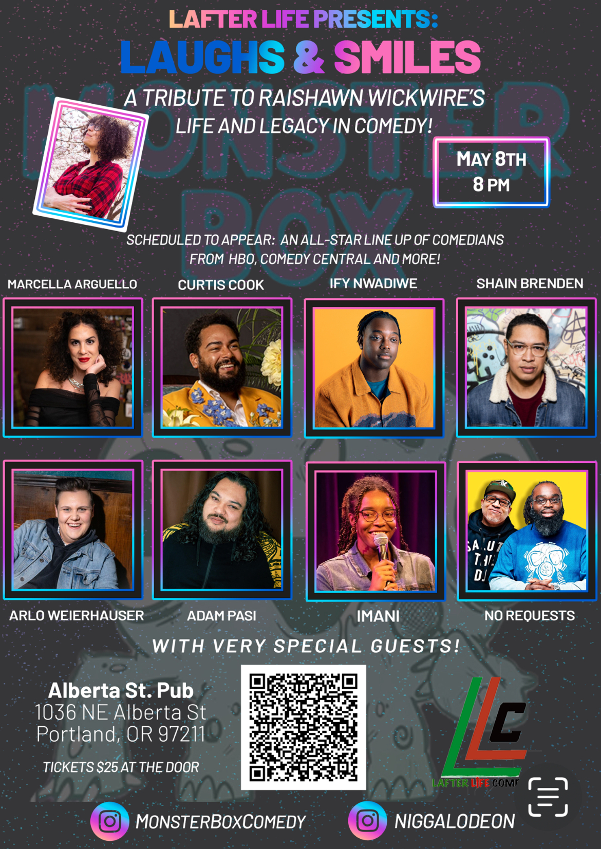 On Thursday, May 8th at 8:00pm, some of standup comedy’s brightest young stars gather at Portland’s Alberta Street Pub for Laughs & Smiles: A Tribute to Raishawn Wickwire’s Life and Legacy in Comedy!
