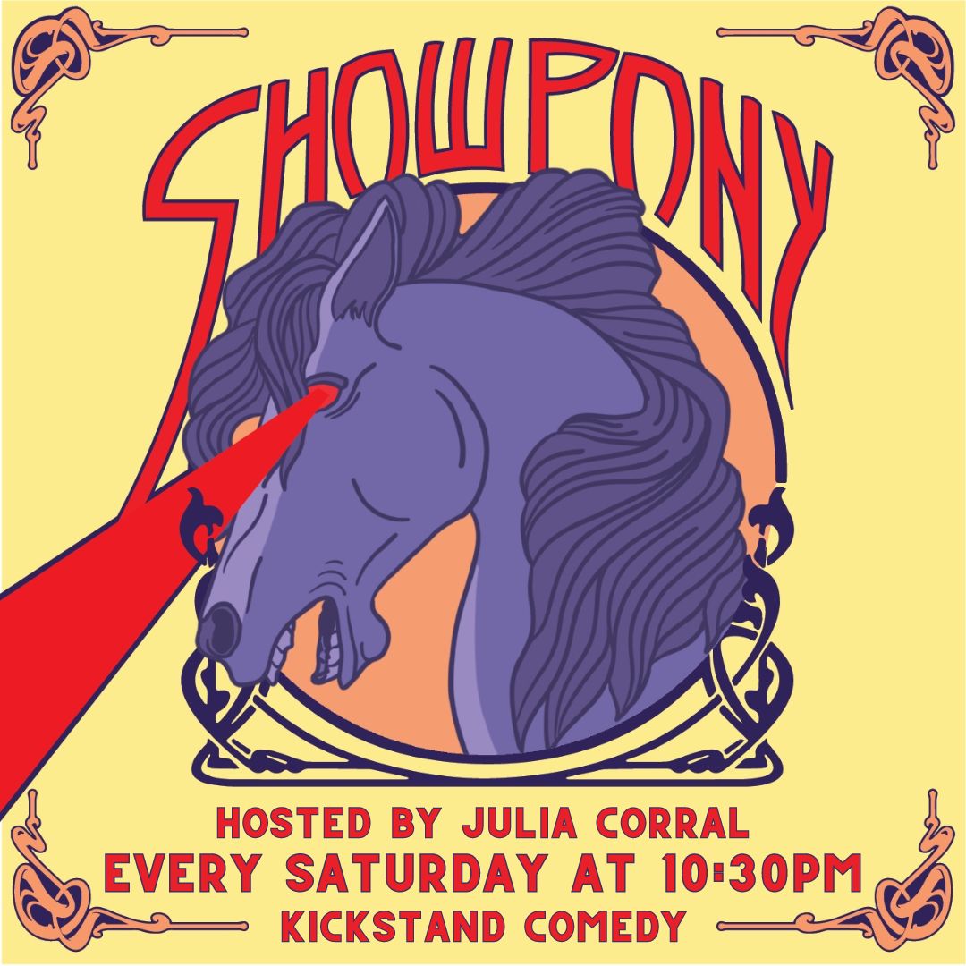 SHOWPONY is a weekly “who’s who” of local and national comedians, featuring Portland-famous special guests, unhinged immersive bits, music, characters, and plenty of gold tinsel. SHOWPONY aims to fill the void for a reliable and accessible can’t-miss weekly Late Night Comedy Show featuring lovingly-curated diverse lineups that truly represent the pulse of 2024s burgeoning PDX comedy scene.