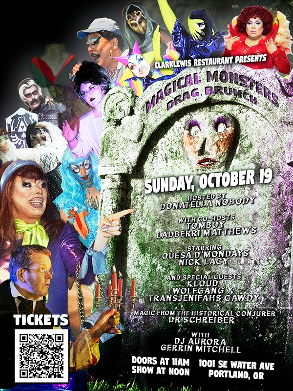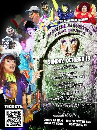 Start your cauldrons, dust off your brooms, and howl at the moon - test your bravery at the most magically monster filled brunch in town. Join us at Clarklewis, situated in the Central Eastside, for an delightfully eerie drag brunch featuring your beloved hosts, Donatella Nobody & LadyBerri Matthews, with special guest host Tomboy. Bring your garlic & crosses and enjoy exceptional seasonal fare and refreshing fall beverages from our kitchen and bar, surrounded by top notch entertainment pulling out every trick (or treat!) in the book.