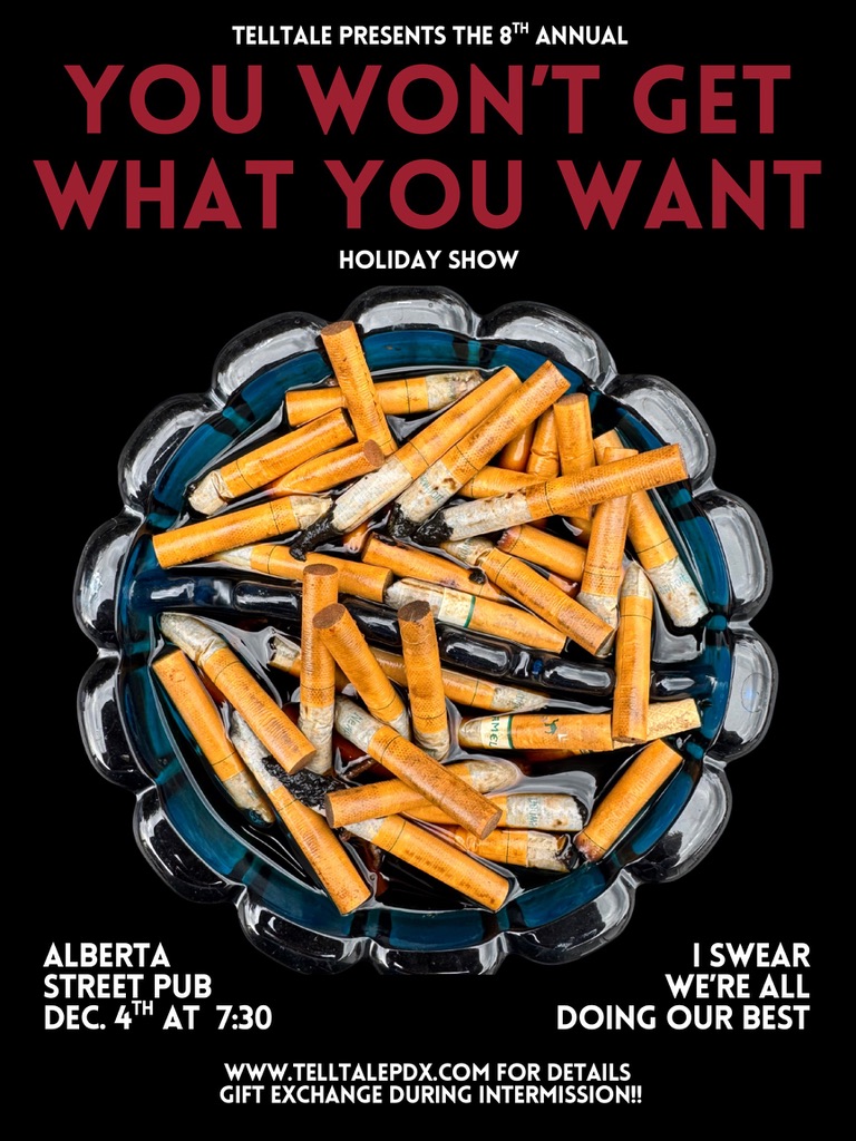 You can expect a dynamic lineup of performers—some local professionals, and some folks brand new to the Telltale community—bringing you earnest and heartfelt stories that will aso make you laugh. It's not a show JUST for misfits, but you know.... it kind of helps. Telltale has been curating special shows for over nine years now, with a focus on creating community connection and making sure everyone feels welcome. This partiuclar show will be our annual holiday show—so please come dressed for the holidays (whatever that means to you) and if you'd like a little whimsy, bring a wrapped gift, and we'll do a sweet gift exchange during the intermission!