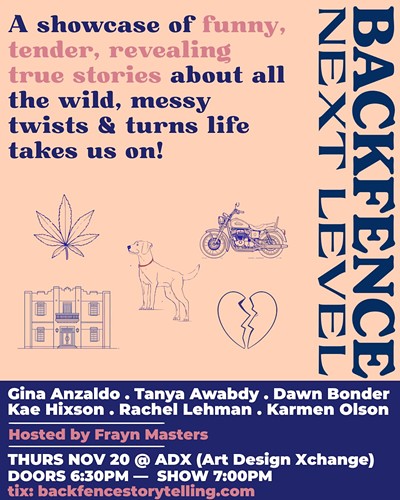 A showcase of five 8-10 min true stories from the FALL #2 Next Level workshop!