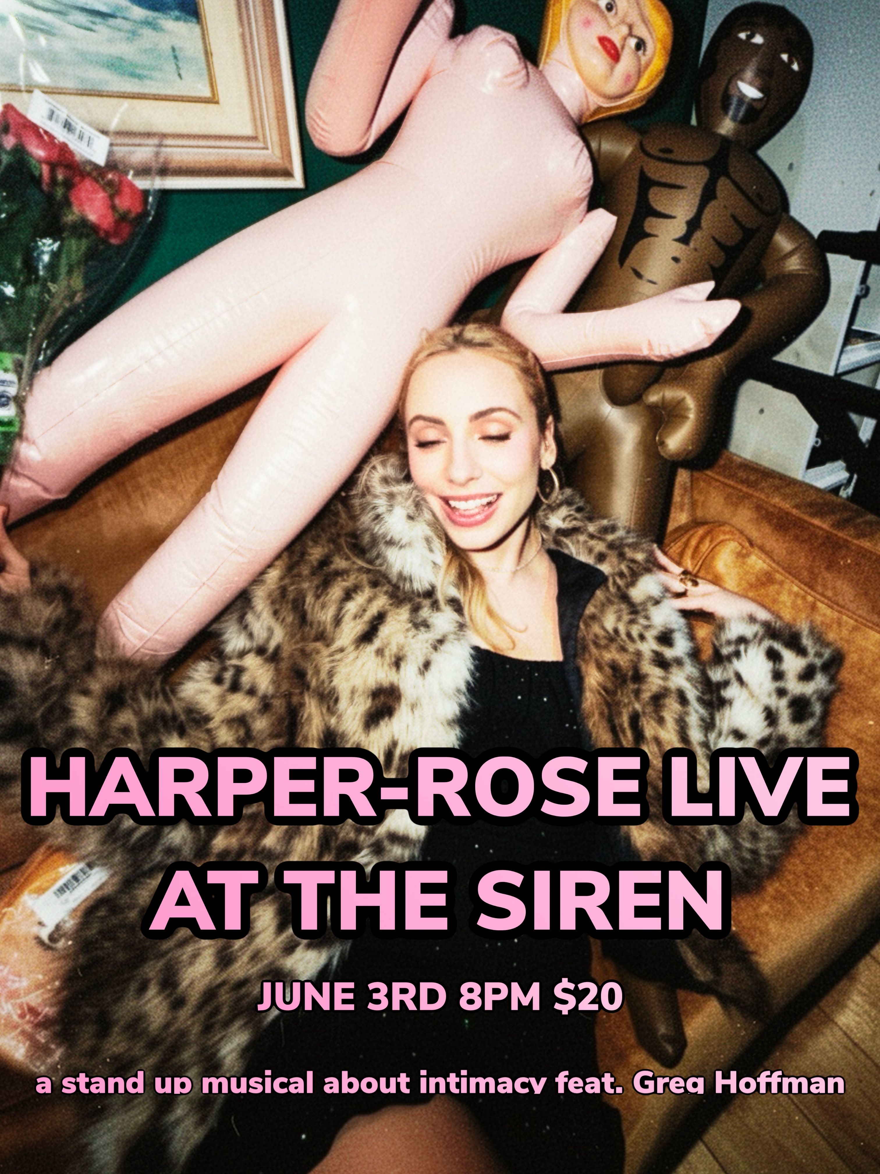 Comedian Harper-Rose (Tea Time Podcast, CBS, Don’t Tell Comedy, LMAOF) is coming back to Portland bringing her musical stand up hour “Adult Baby Doll” accompanied by Greg Hoffman on piano. Growing up Harper-Rose’s family always sang when they were uncomfortable. So she wrote a show about it. The hour is a darkly funny, musical stand up experience, exploring intimacy and acceptance. Fresh off of taping their show in Los Angeles, Harper-Rose & Greg are bringing the show on the road, don’t miss it!