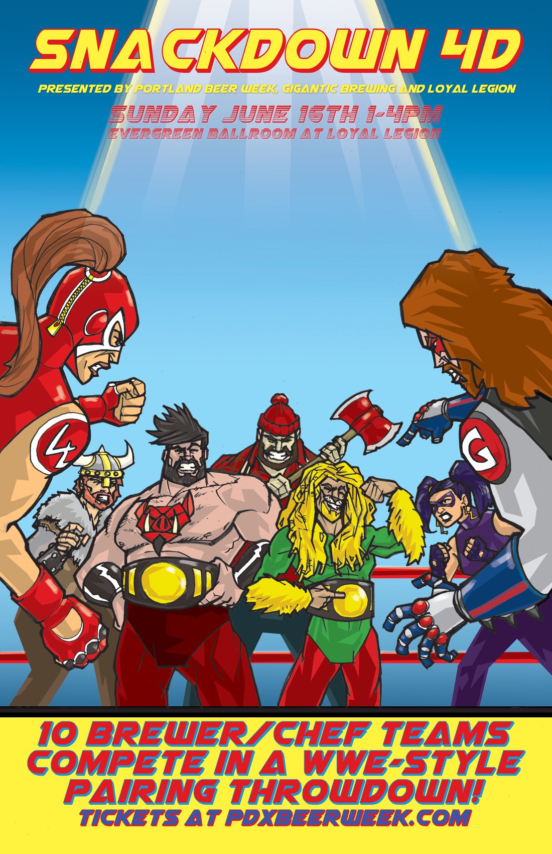 PDX Beer Week & Gigantic Brewing Company present SNACKDOWN!!!! 4.0 on Sunday June 16th at The Evergreen event space above Loyal Legion. SNACKDOWN! is a fun and entertaining food and beer pairing event where 10 of Portland's best Chefs and 10 Oregon Brewers are paired into 10 Brewer/Chef teams to make their greatest snack and beer pairing. Guests will choose their favorite pairing and the winners will be awarded the SNACKDOWN Belt!